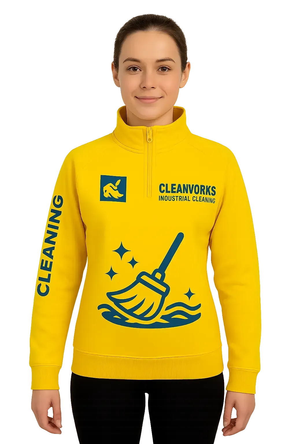 Professionalità e riconoscibilità in ogni dettaglio. Le nostre felpe personalizzate sono perfette per operatori del settore pulizie e sicurezza: resistenti, comode e facilmente identificabili con logo e nome aziendale.
